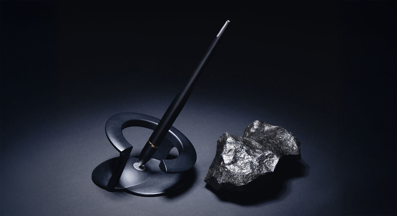 他們也推出高單價限量款,例如隕石收藏款,筆尾嵌入隕石碎片,在切面上還可以看到隕石獨有的魏德曼花紋;還有名為 Apollo 的限量款,嵌有阿波羅 11 號指令艙的碎片。