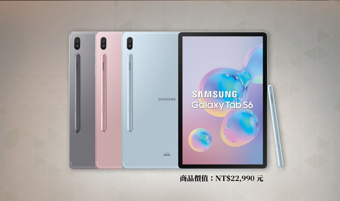 - 三星Tab S6旗艦平板,市價:22,990元,恕不挑色。
